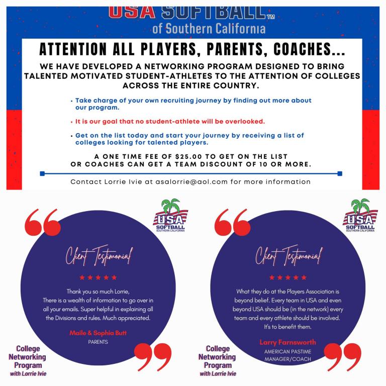 I will be updating schools that are looking for players and passing it on to your players. Any questions just email or call.